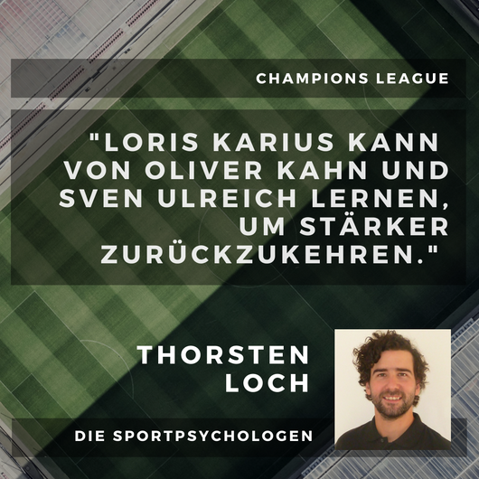 Karius ist nun gut darin beraten, erst einmal ein wenig Abstand zu gewinnen, damit ausführliche – emotional nicht behaftete – Analysen durchgeführt werden können. Dann sollte er seine Leistung in Relation zu seinen bisher gezeigten Leistungen setzen. Eine gute Möglichkeit besteht darin, zu erforschen, dass er nicht der Einzige ist, dem solches passiert ist. Selbst einem Oliver Kahn im WM–Finale 2002 oder kürzlich Sven Ulreich im Champions League-Halbfinale sind schwerwiegende Fehler schon unterlaufen. Dabei wird er erkennen können, dass die Wahrscheinlichkeit, dass ihm ein solches Spiel nochmals passieren könnte, so gering ist, dass er seinen Nutzen daraus ziehen kann und gestärkt aus dieser schweren Phase herauskommen kann.