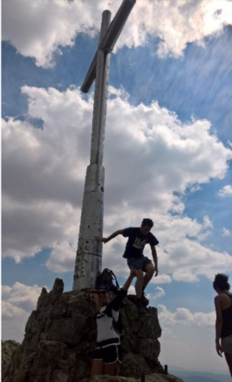 Liebe Leserinnen und Leser, was jetzt kommt: „Bitte nicht nachmachen“! Ich weiß, dass das unvernünftig war und ich weiß auch, dass ich damit kein Vorbild für andere Menschen bin. Dass wir dann am nächsten Tag tatsächlich los marschiert/gerannt sind, hat mit einem tiefen Urvertrauen in unsere (Frauke und meine) Fähigkeiten zu tun und wahrscheinlich auch damit, dass ich dann tatsächlich, bevor wir los sind, in einer Apotheke hier – zwar keinen echten Air-Cast – aber einen brauchbaren Knöchel-Stabilisator bekommen habe. Und dann sind wir beide – also Frauke und ich los in Richtung Punta la Marmola – und ich möchte keine Minute davon missen. Dieses gemeinsame Abenteuer da hinauf, das „Sein im Hier und Jetzt“ in dieser wilden, rauen Natur, ganz alleine mit uns und dem Berg. Das war trotz des Knöchels, ein unvergessliches Erlebnis. Wir haben kurz vor dem Gipfel dann sogar noch unsere beiden angehenden Ärzte getroffen und ein schönes Wiedersehen gefeiert. Der Abstieg war dann sehr fordernd für mich, vor allen Dingen, was Konzentration und Aufmerksamkeit betraf. Wir haben fast sechs Stunden für die 30 Kilometer und 1500 positive Höhemeter gebraucht, aber das Erlebnis und der Ausblick bei diesem Traumwetter von dort oben, was es absolut wert.
