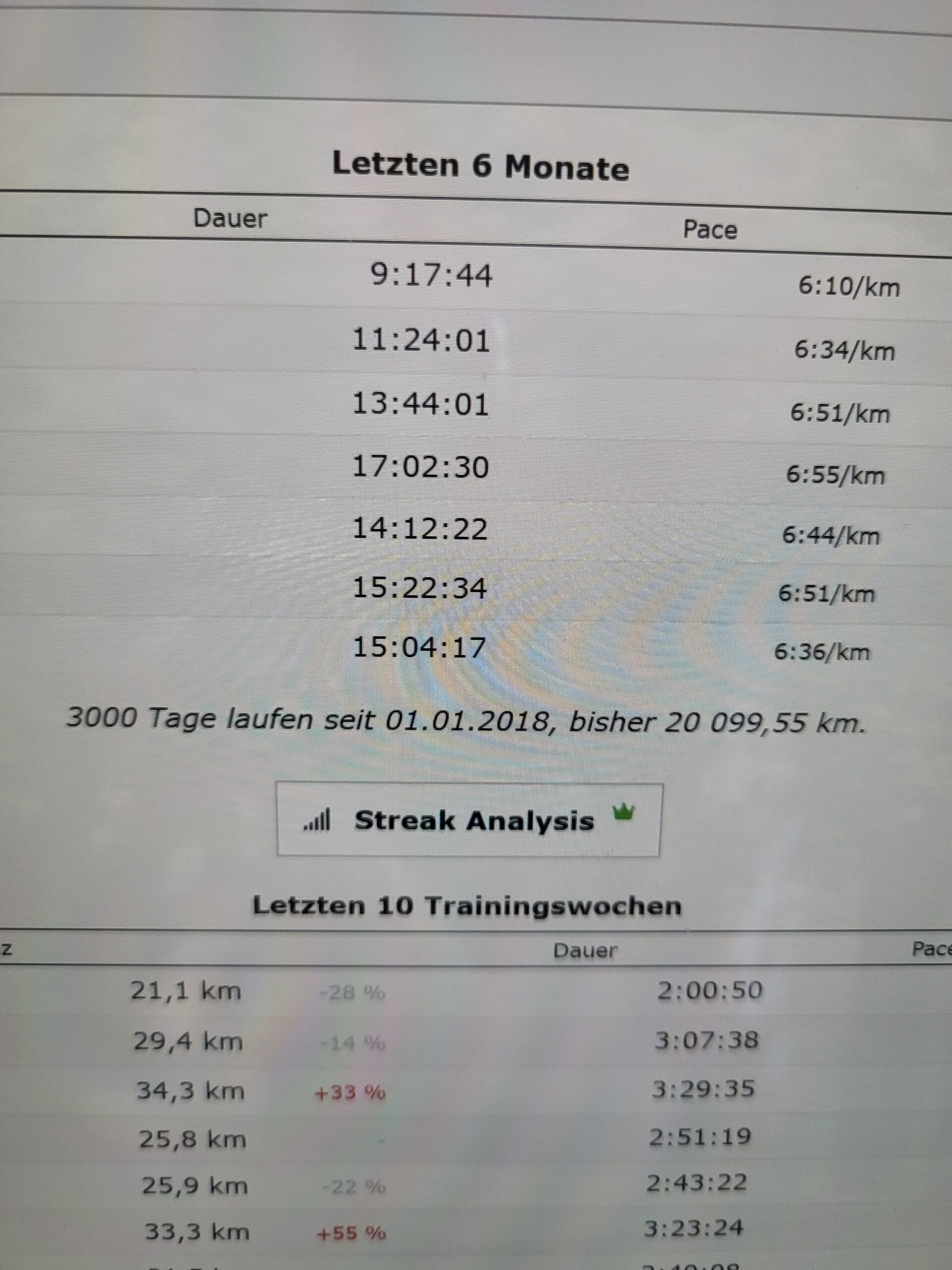 Meine öffentlichen „Auftritte“ als Täglich-Läufer sind deutlich zurückgegangen. Ich poste dazu so gut wie kaum mehr über meine Social-Media-Kanäle. Das war anders im ersten Jahr dieses „Experiments“, als ich auf unserer Plattform Die Sportpsychologen jeden Monat über meine Erfahrungen berichtet habe (siehe Link unten, Mehr zum Streakrunning). Nun bin ich seit gut achteinviertel Jahren, also 3000 Tagen, täglich unterwegs. Das hat mich dazu bewogen, erneut darüber nachzudenken und einige Gedanken mit euch zu teilen.