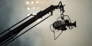 TV camera on a crane on football mach or concert